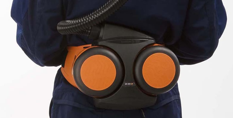 Junto con filtro y equipo facial aprobado, el SR 500 EX forma parte del sistema de protección respiratoria asistido por ventilador de Sundström.